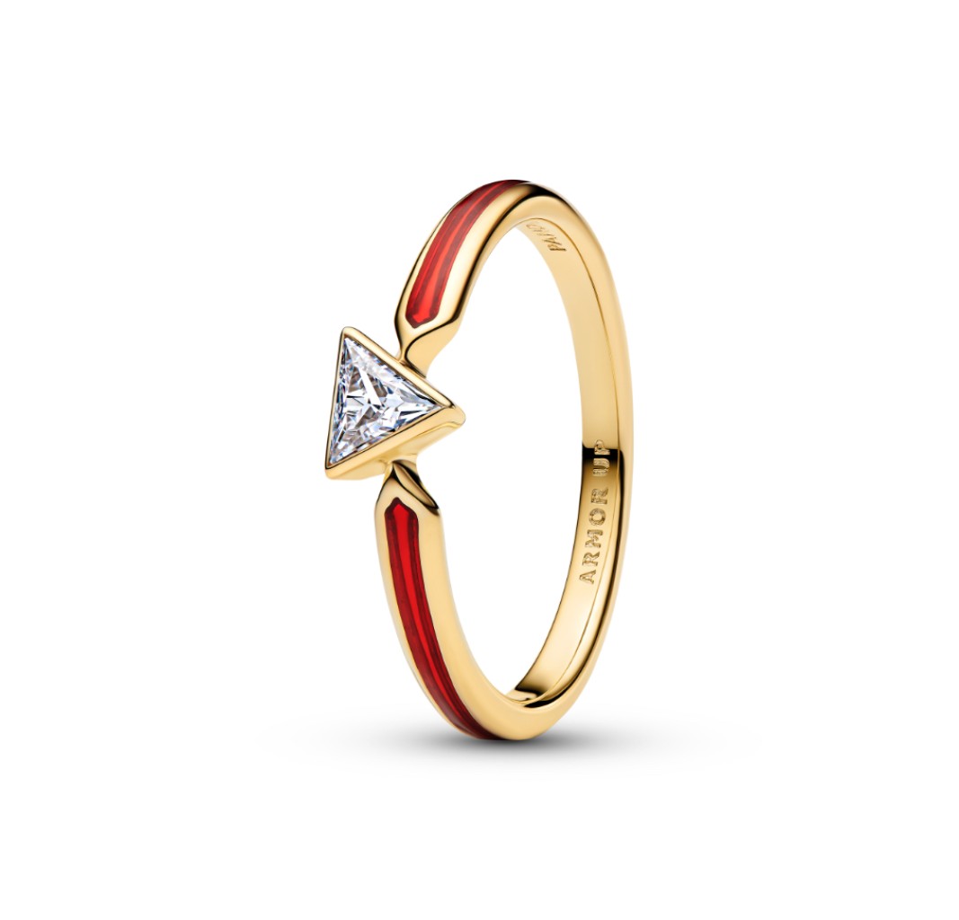 164211C01-48 Marvel Iron Man 14k gold-plated ring with clear cubic zirconia and red enamel
