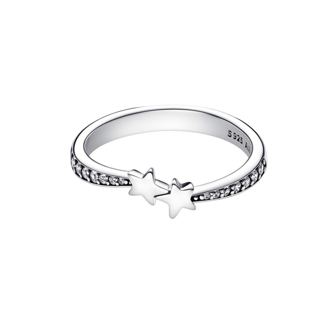 192365C01-54 Stars sterling silver ring with clear cubic zirconia