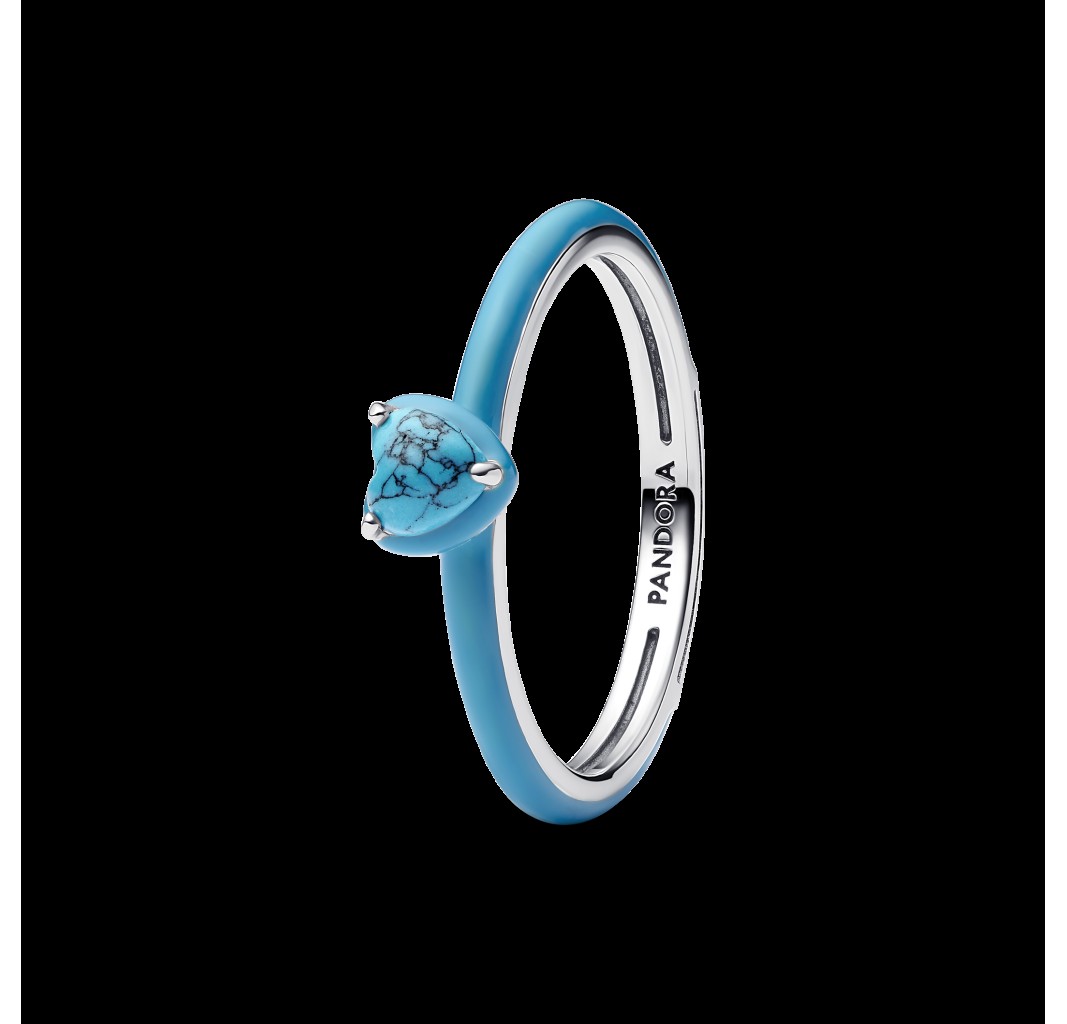 193828C01-46 Heart sterling silver ring with imitation turquoise and turquoise enamel