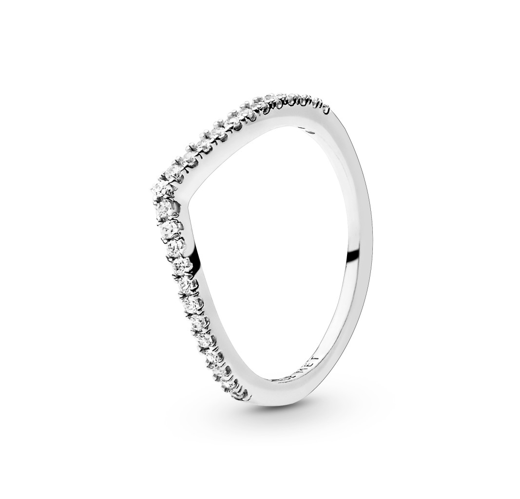 196316CZ-54 Wishbone silver ring with clear cubic zirconia