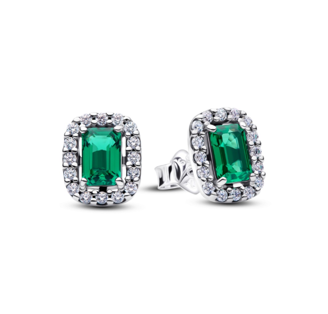 PANDORA 294501C01 Pendientes de plata de ley con cristal verde real y circonitas cúbicas transparentes.