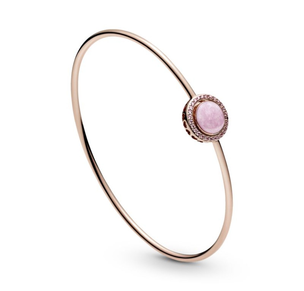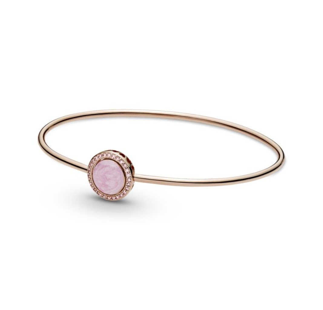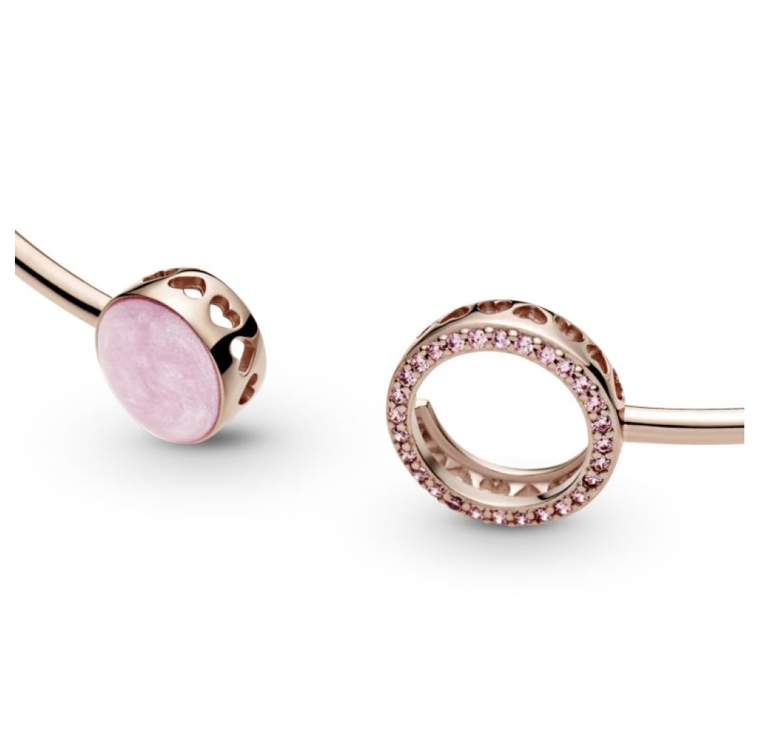 Pulsera Remolino Rosa en Pandora Rose, una aleación única de metales con un recubrimiento de oro de segunda ley de 14k, adornada con esmalte rosa.