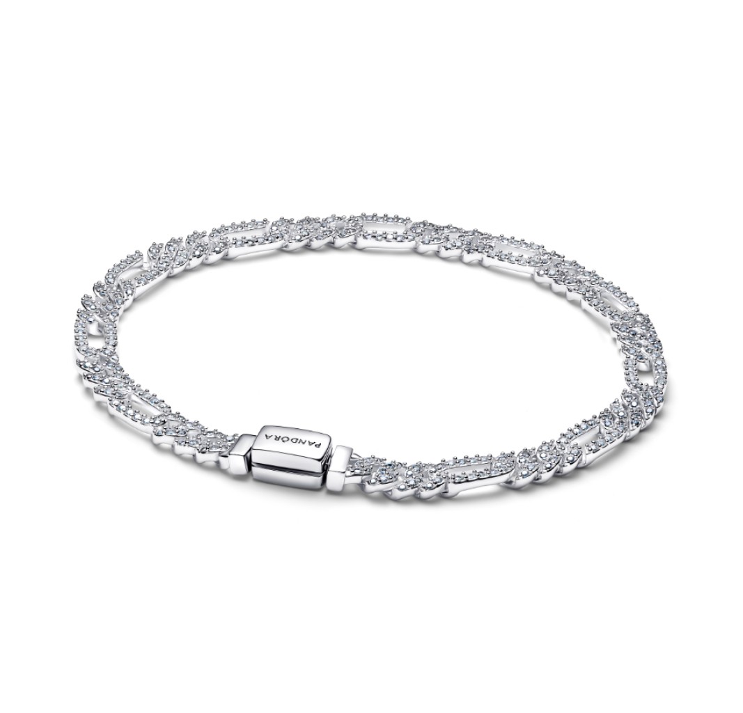 594227C01-18 Oval cuban chain sterling silver bracelet with clear cubic zirconia
