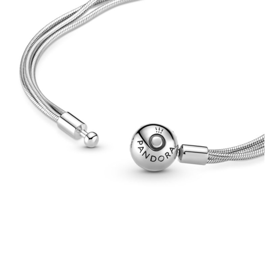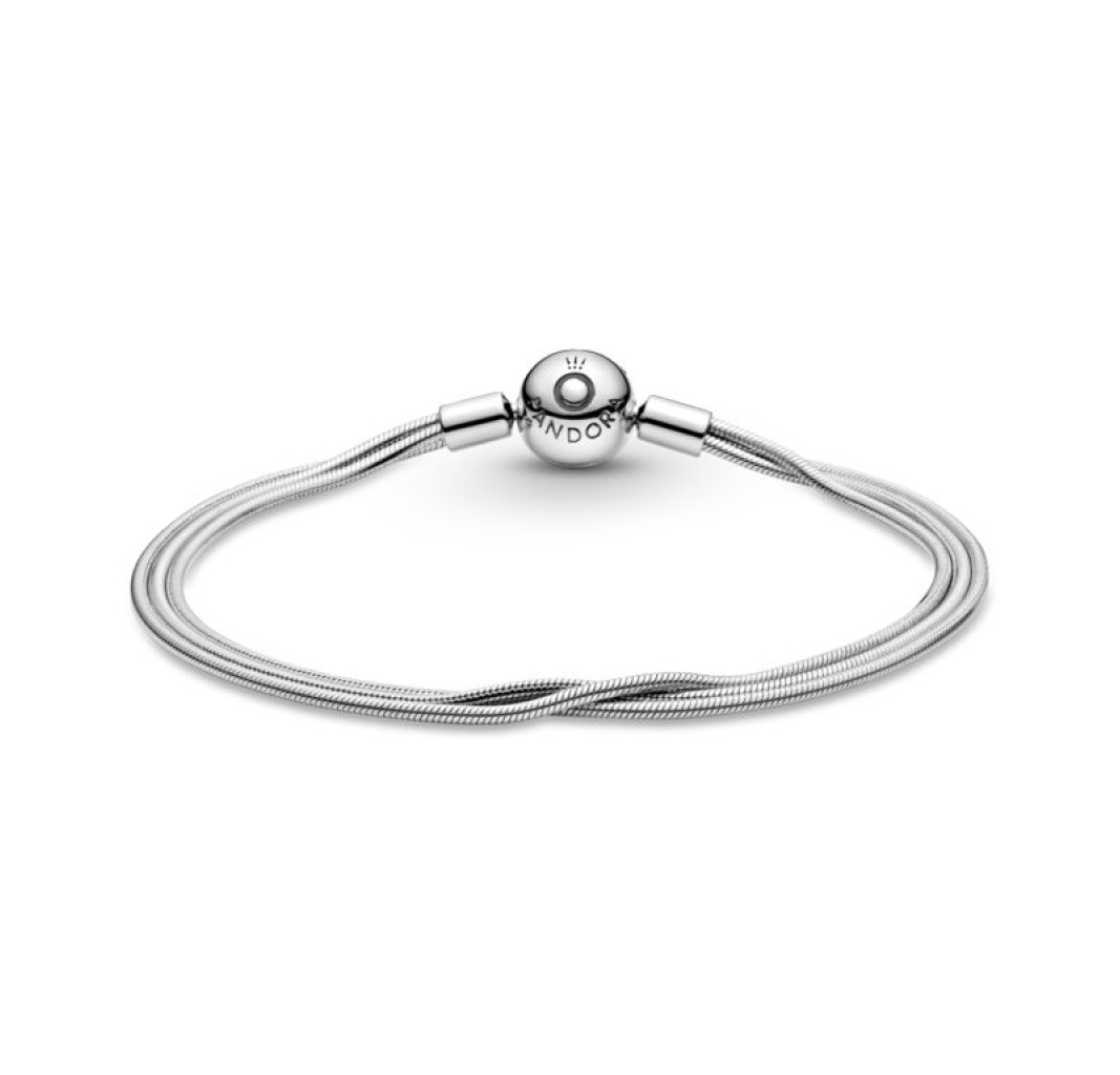 Pulsera Pandora Moments Multi Cadena de Serpiente en plata de primera ley con cierre en forma circular.