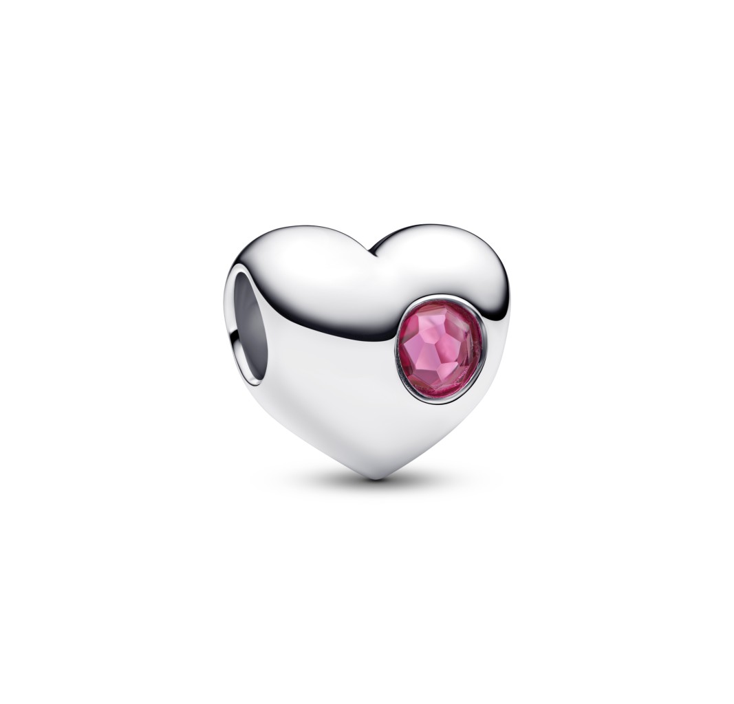 794161C10 Engravable heart sterling silver charm with phlox pink crystal
