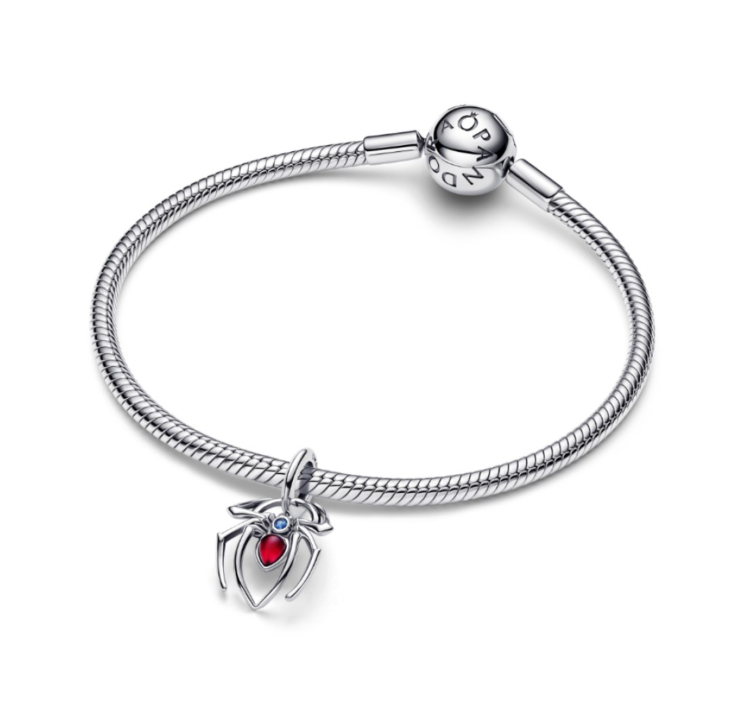 794224C01 Marvel Spider sterling silver dangle with sky blue and fuchsia rose crystal