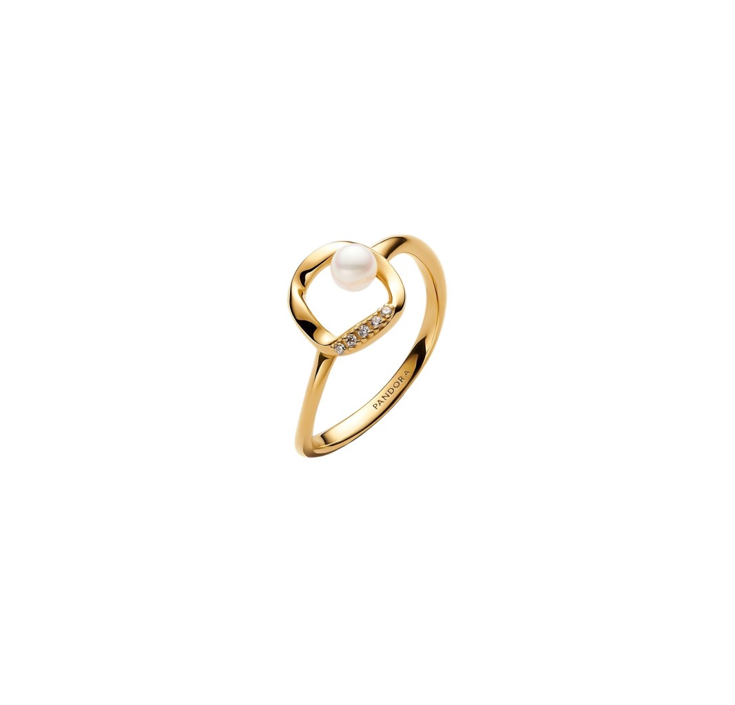 PANDORA 163831C01 14k gold-plated ring with treated white freshwater cultured pearl and clear cubic zirconia