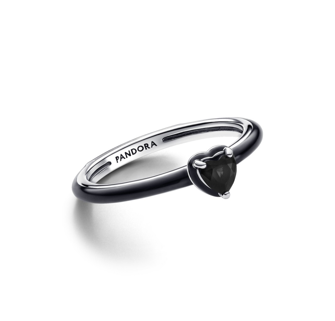 PANDORA 193088C01-48 Anillo corazón de plata de primera ley con cristal negro y esmalte negro