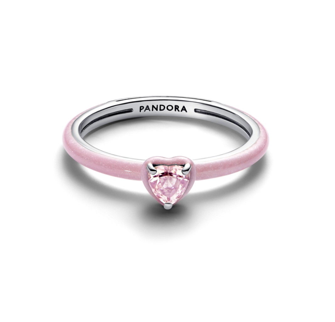 PANDORA 193088C02 Anillo de plata de ley con forma de corazón con cristal rosa orquídea y esmalte rosa brillante
