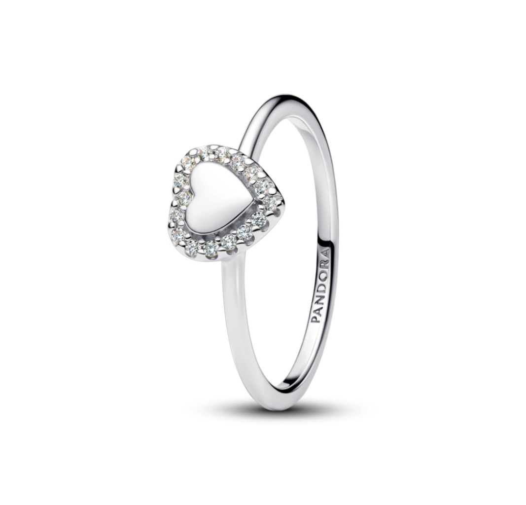 PANDORA 193801C01 Anillo de plata de ley con forma de corazón grabable y circonita cúbica transparente.