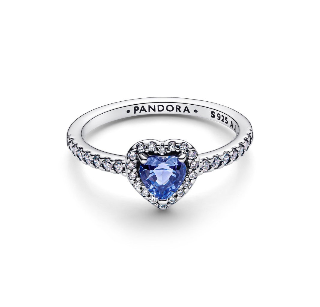 PANDORA 198421C05 Anillo de plata de ley con forma de corazón con cristal azul aciano y circonita cúbica transparente