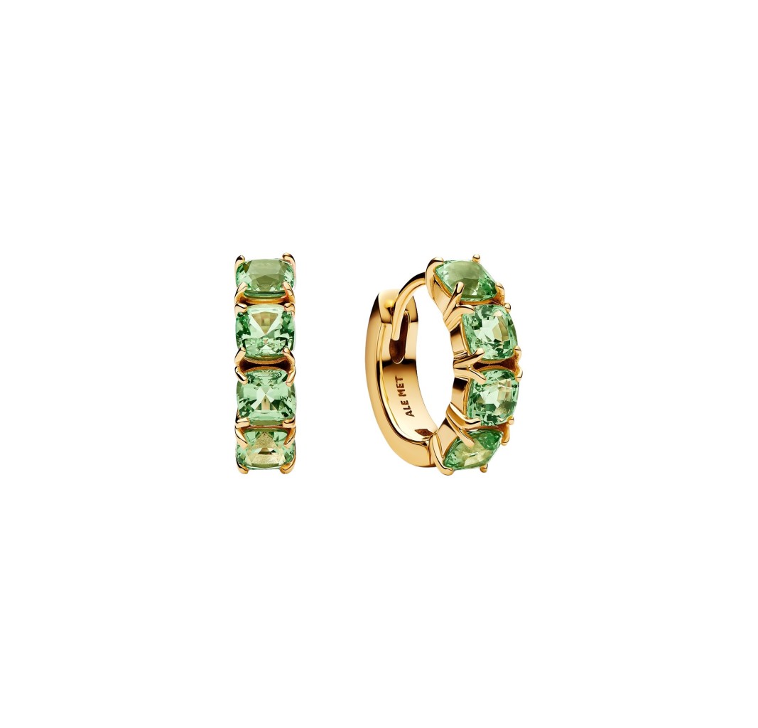 PANDORA 263851C01 14k gold-plated hoop earrings with mint green crystal