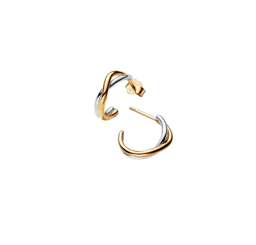 PANDORA 263880C00 Organically shaped sterling silver and 14k gold-plated hoop earrings