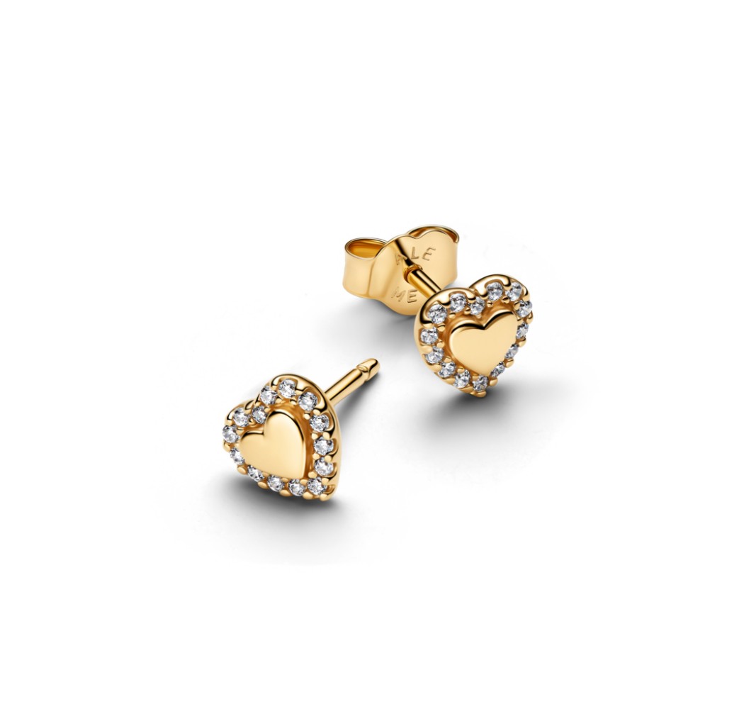 PANDORA 264363C01 Heart 14k gold-plated stud earrings with clear cubic zirconia