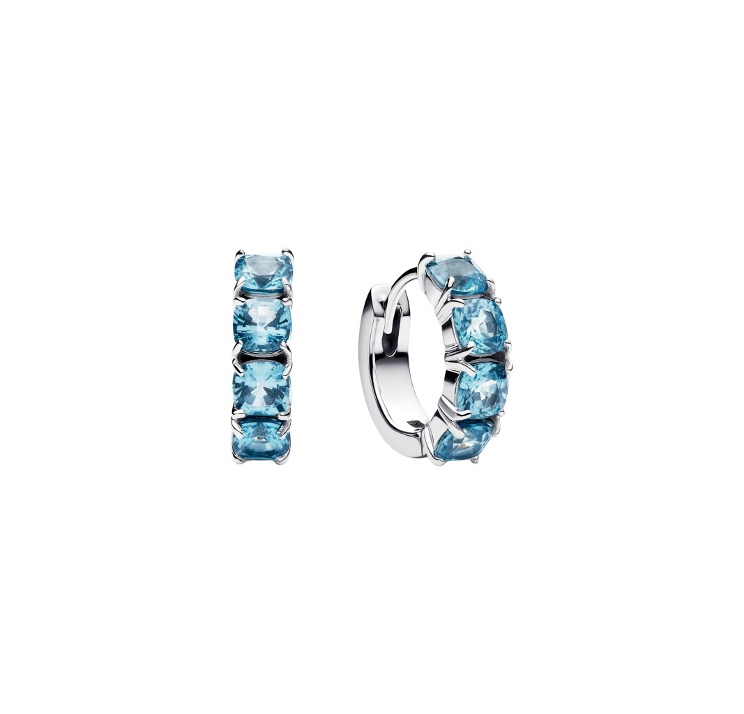 PANDORA 293851C01 Sterling silver hoop earrings with aquamarine blue crystal