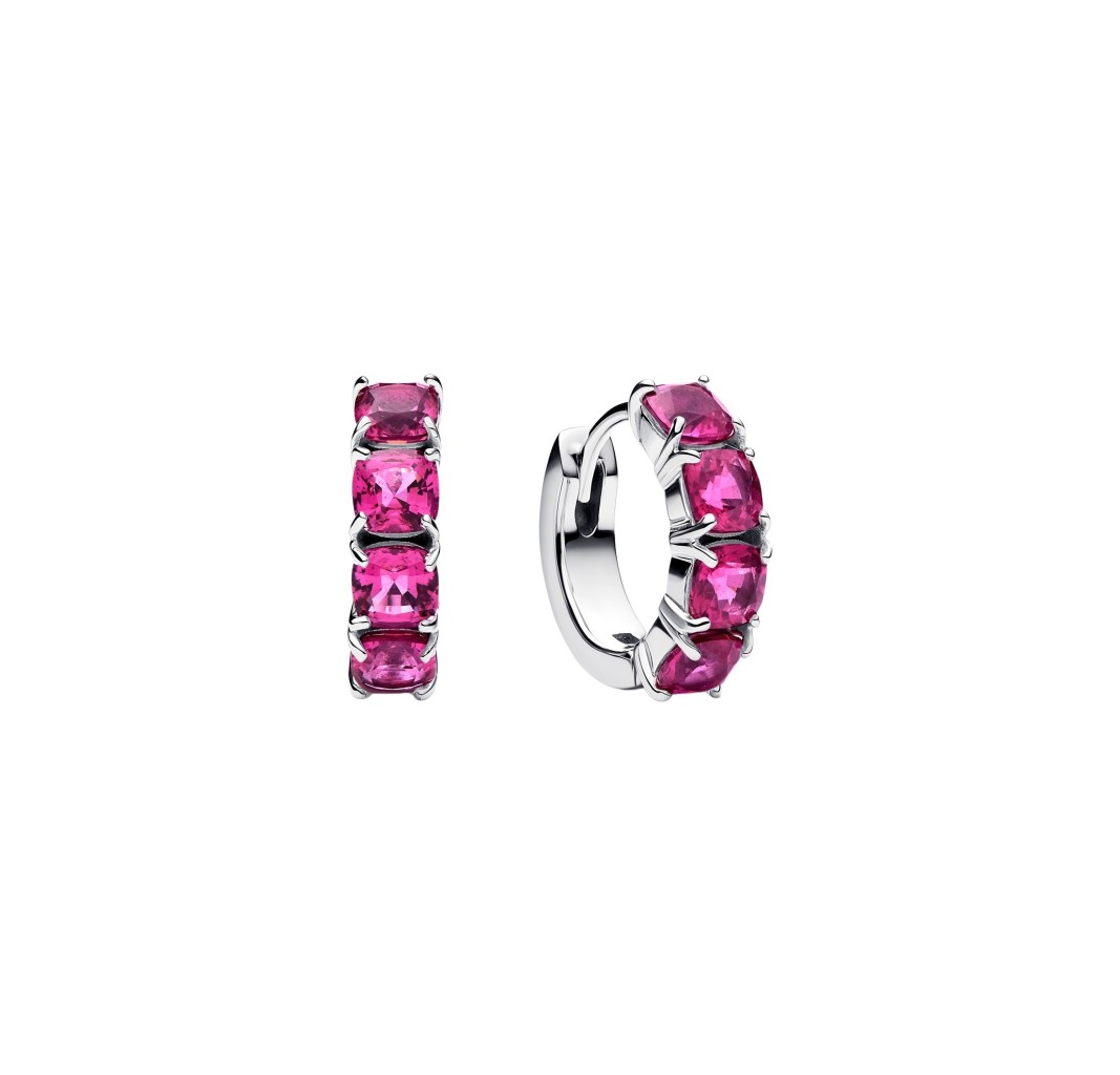PANDORA 293851C02 Sterling silver hoop earrings with phlox pink crystal