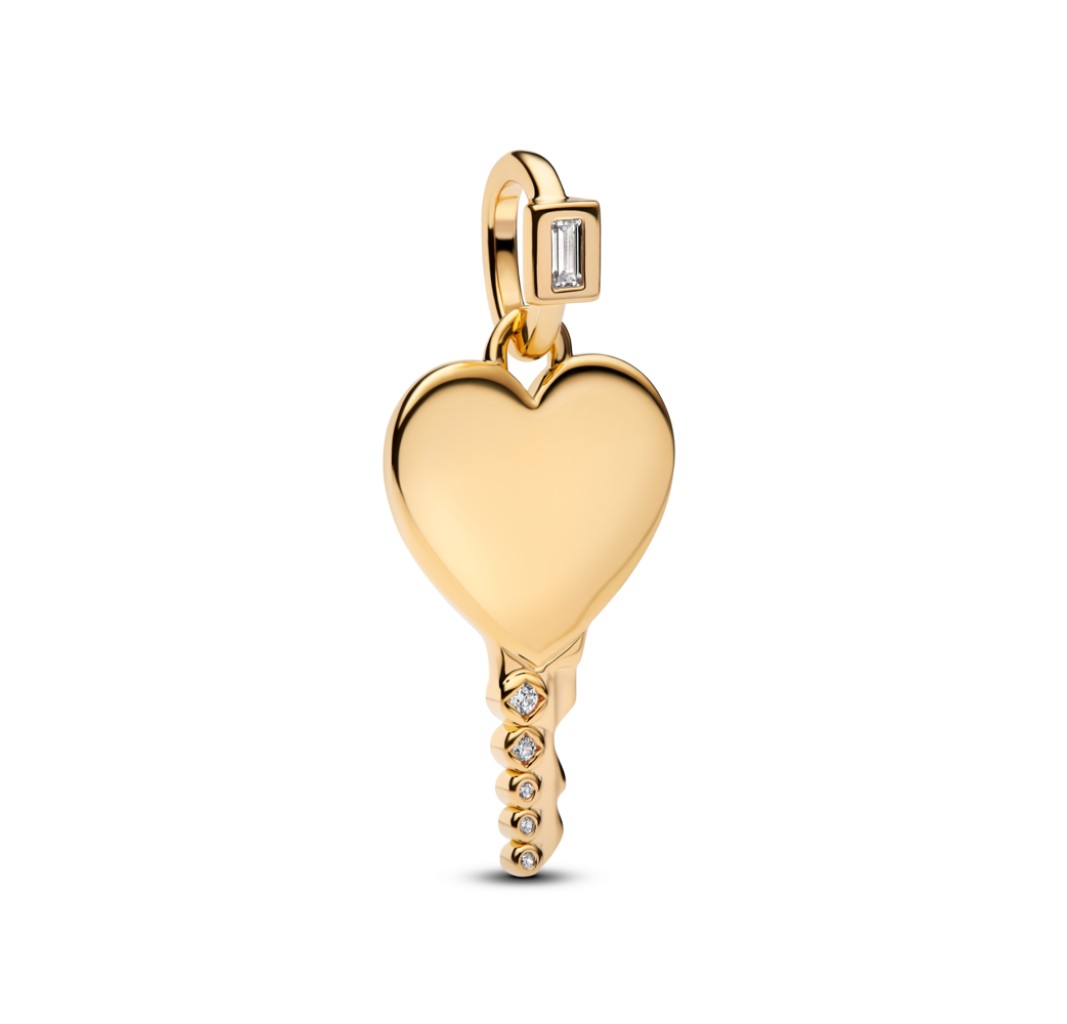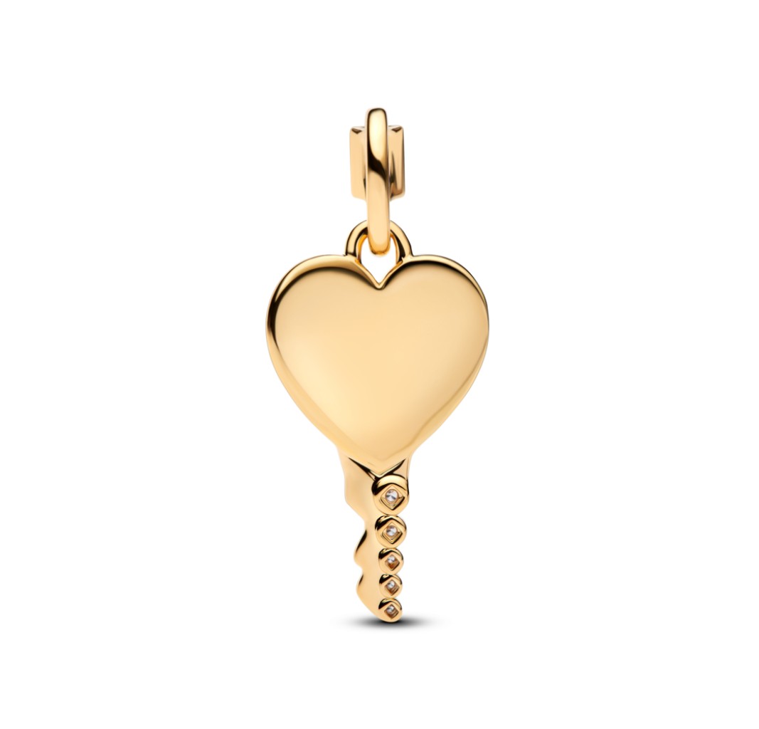 PANDORA 364353C01 Engravable heart key 14k gold-plated pendant with clear cubic zirconia
