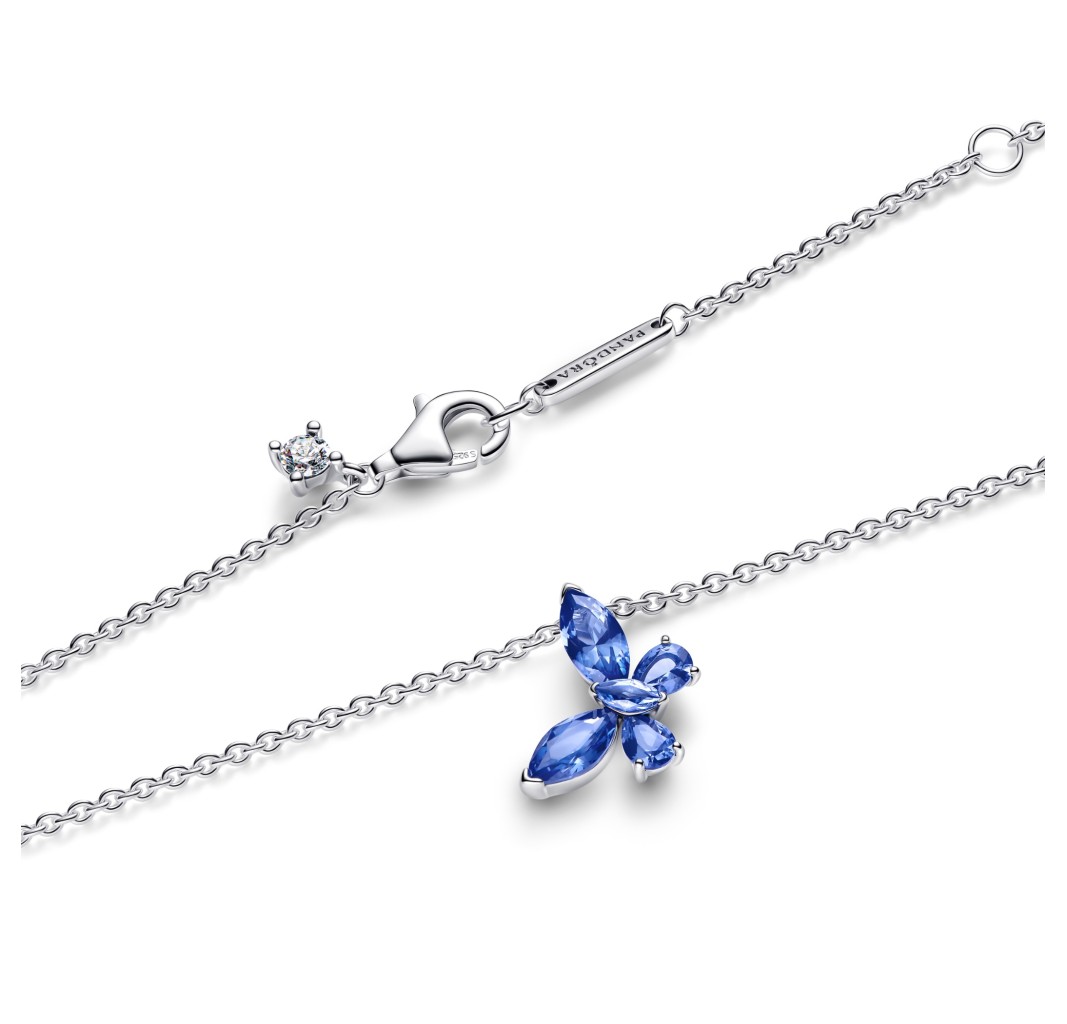 PANDORA 394232C01 Collar de plata de ley con forma de mariposa con cristal azul aciano y circonitas cúbicas transparentes
