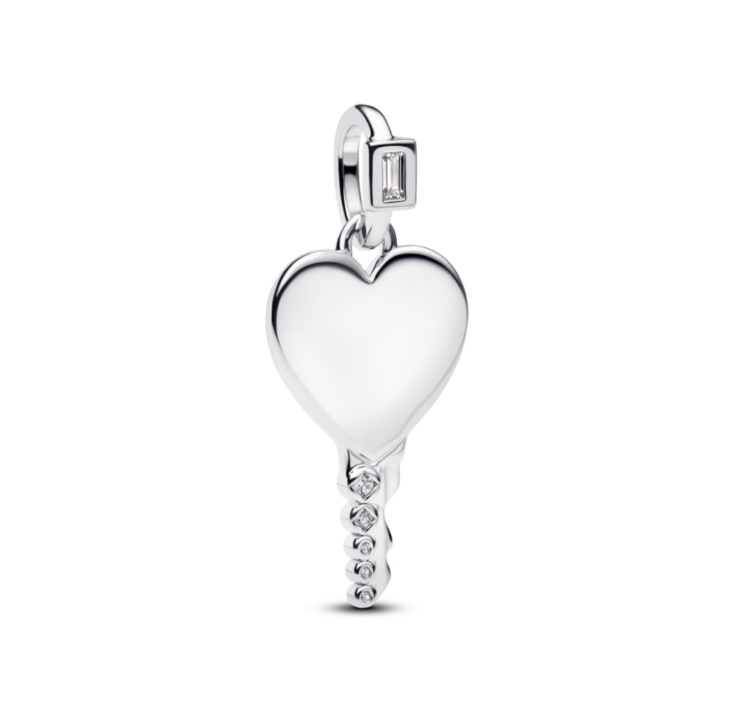 PANDORA 394353C01 Engravable heart key sterling silver pendant with clear cubic zirconia