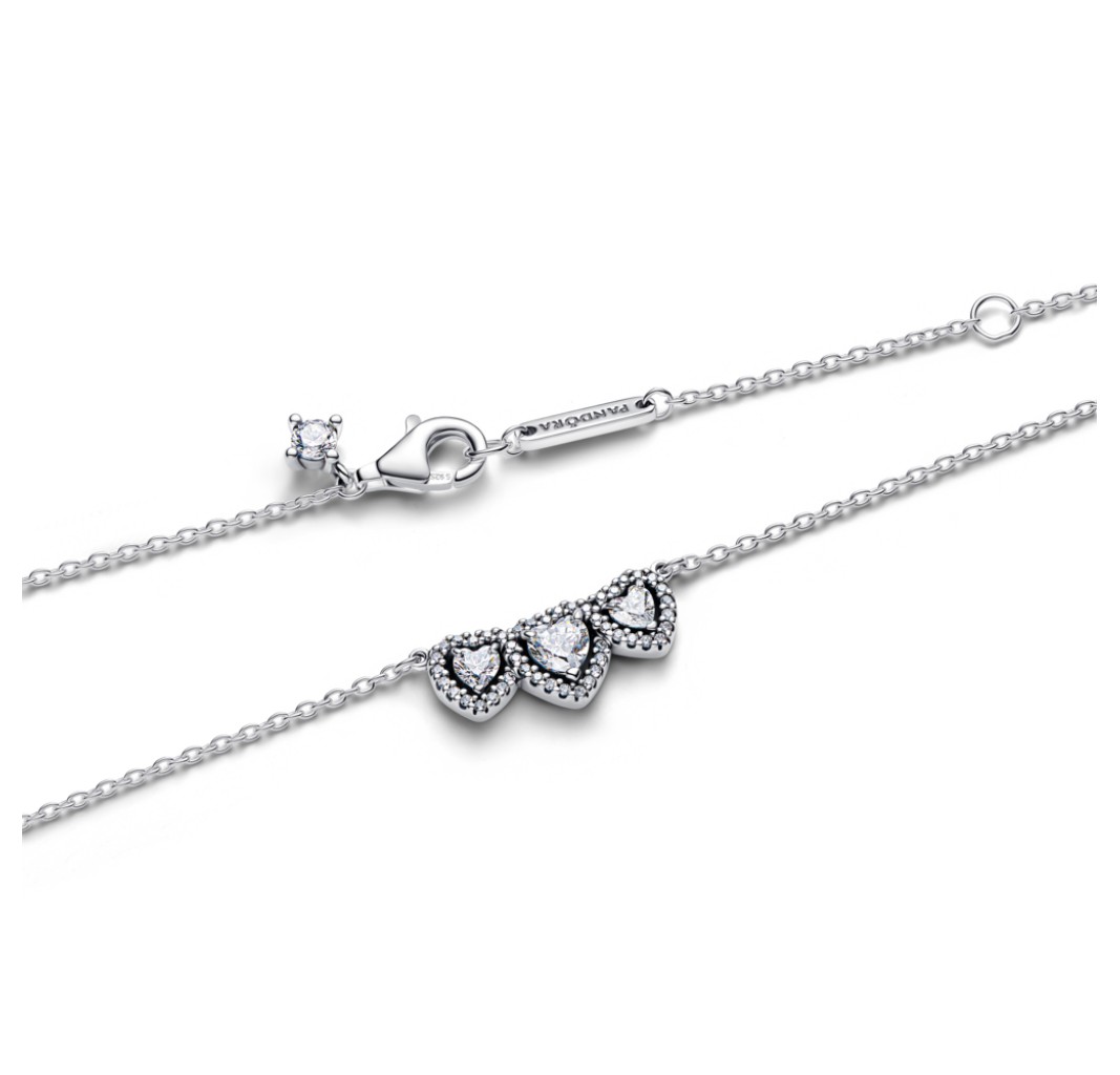 PANDORA 394412C01 Triple heart sterling silver collier with clear cubic zirconia