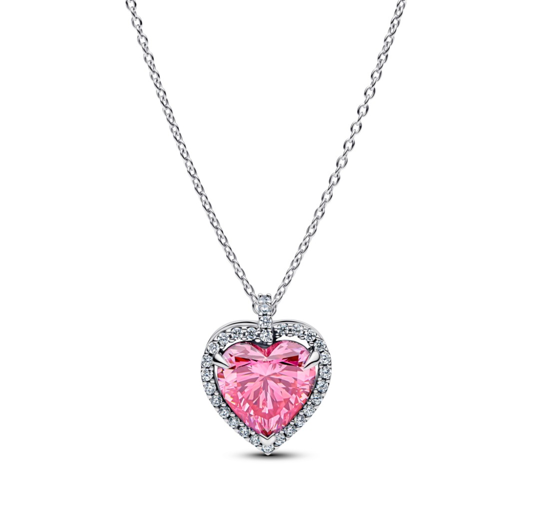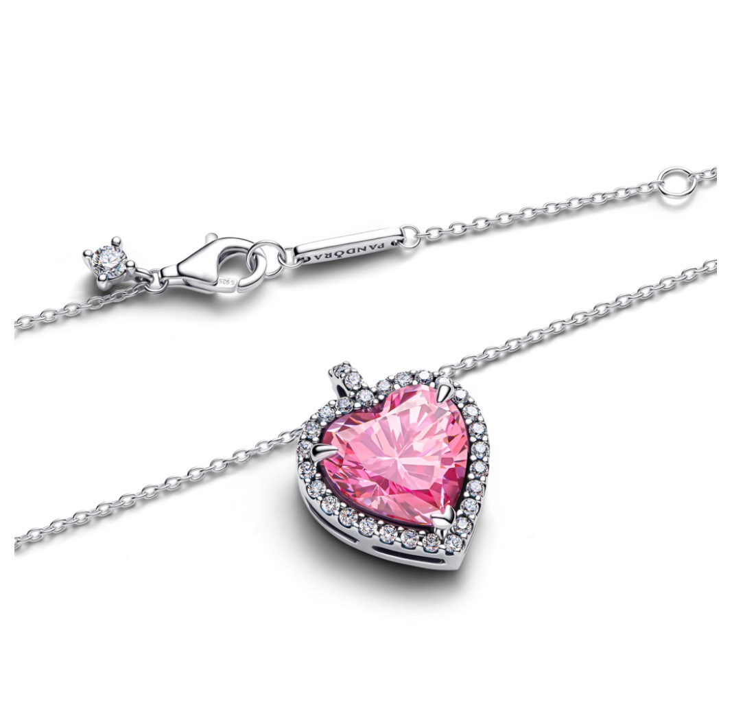 PANDORA 394414C01 Heart sterling silver collier with fancy pink and clear cubic zirconia