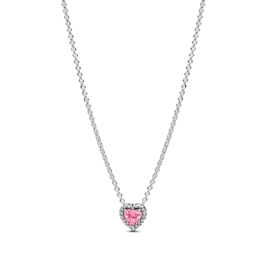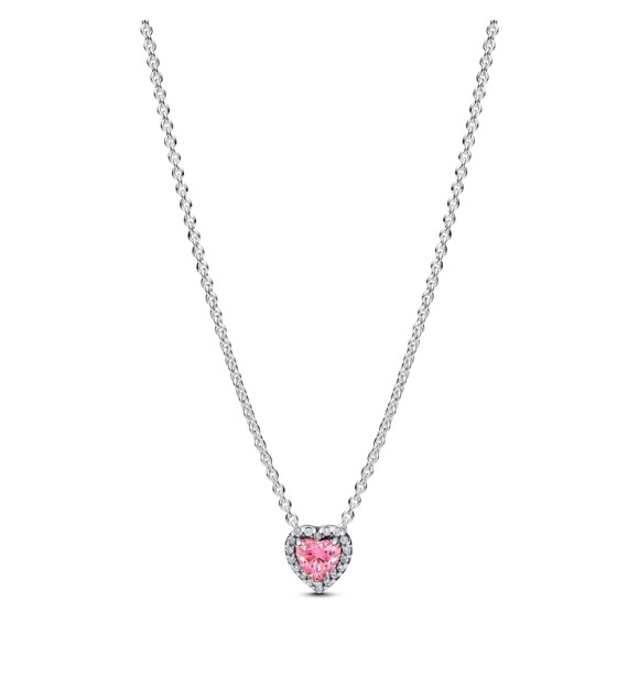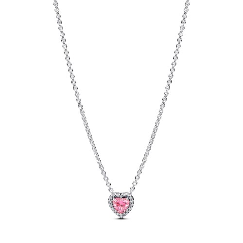 PANDORA 398425C02 Collar de plata de ley con forma de corazón y circonitas cúbicas rosas y transparentes de fantasía
