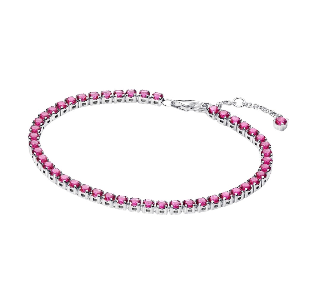 PANDORA 591469C04 Sterling silver tennis bracelet with dark phlox pink crystal