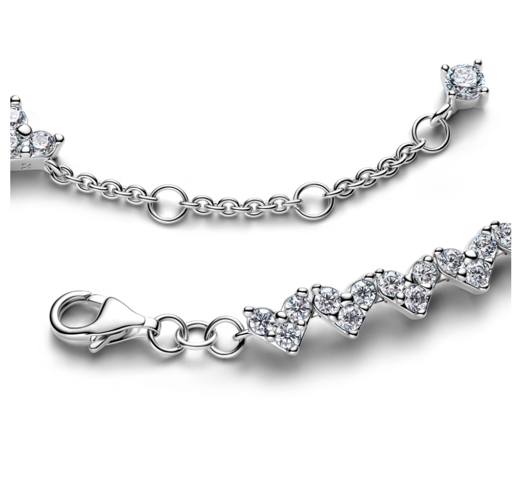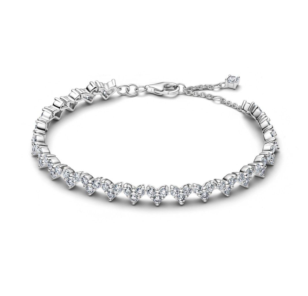 PANDORA 594390C01 Heart sterling silver tennis bracelet with clear cubic zirconia