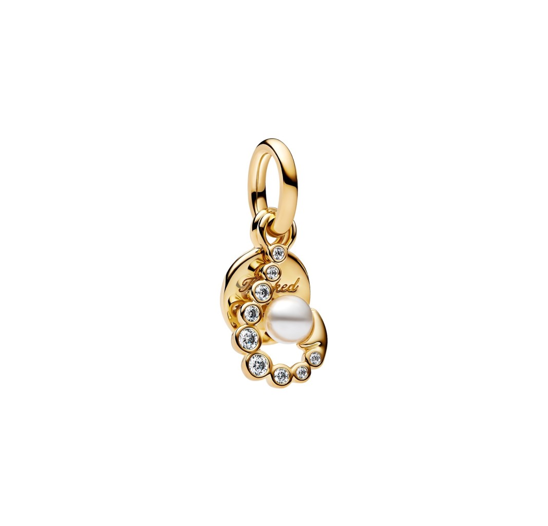 PANDORA 763891C01 Hook 14k gold-plated double dangle with white lacquered artificial pearl and clear cubic zirconia