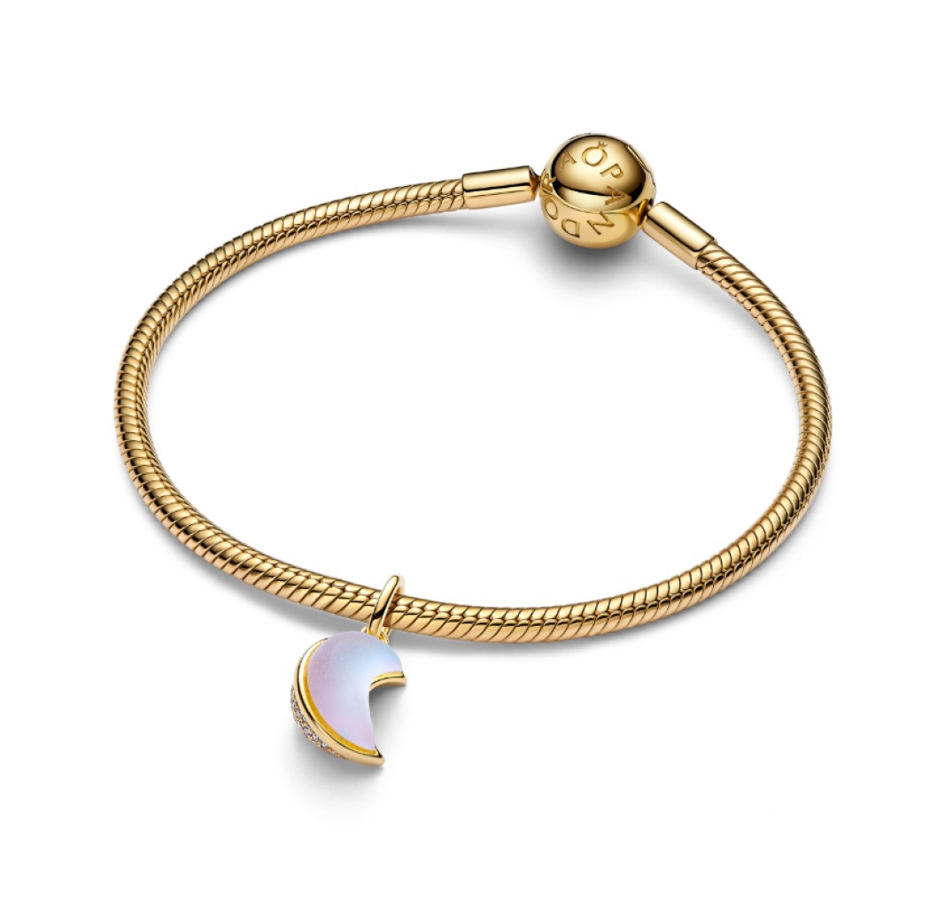 PANDORA 764275C01 Colgante de luna bañado en oro de 14k con circonita cúbica transparente y cristal iridiscente de piedra lunar.