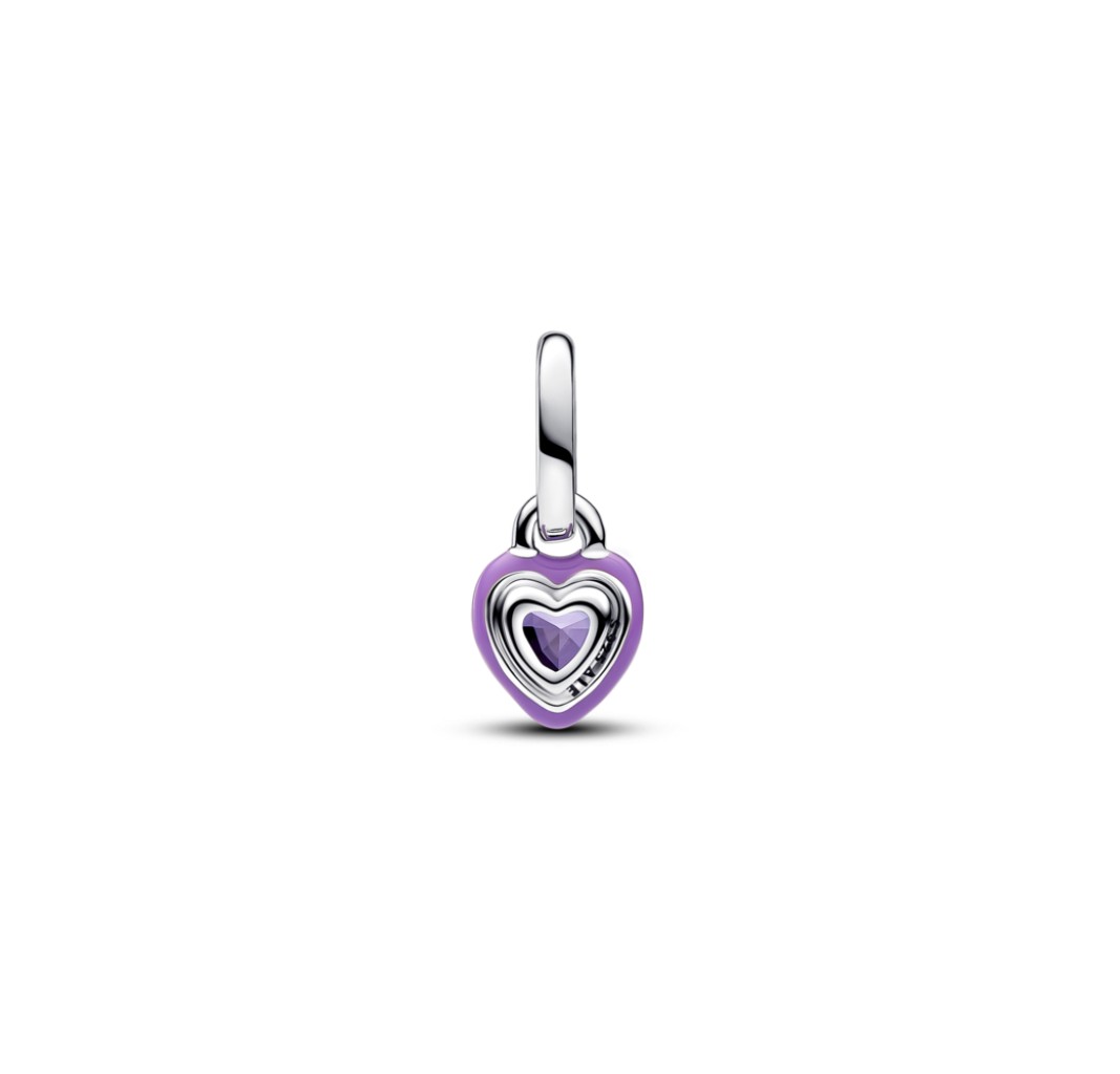 PANDORA 793042C04 Mini colgante de corazón de plata de primera ley con cristal de color púrpura real y esmalte morado