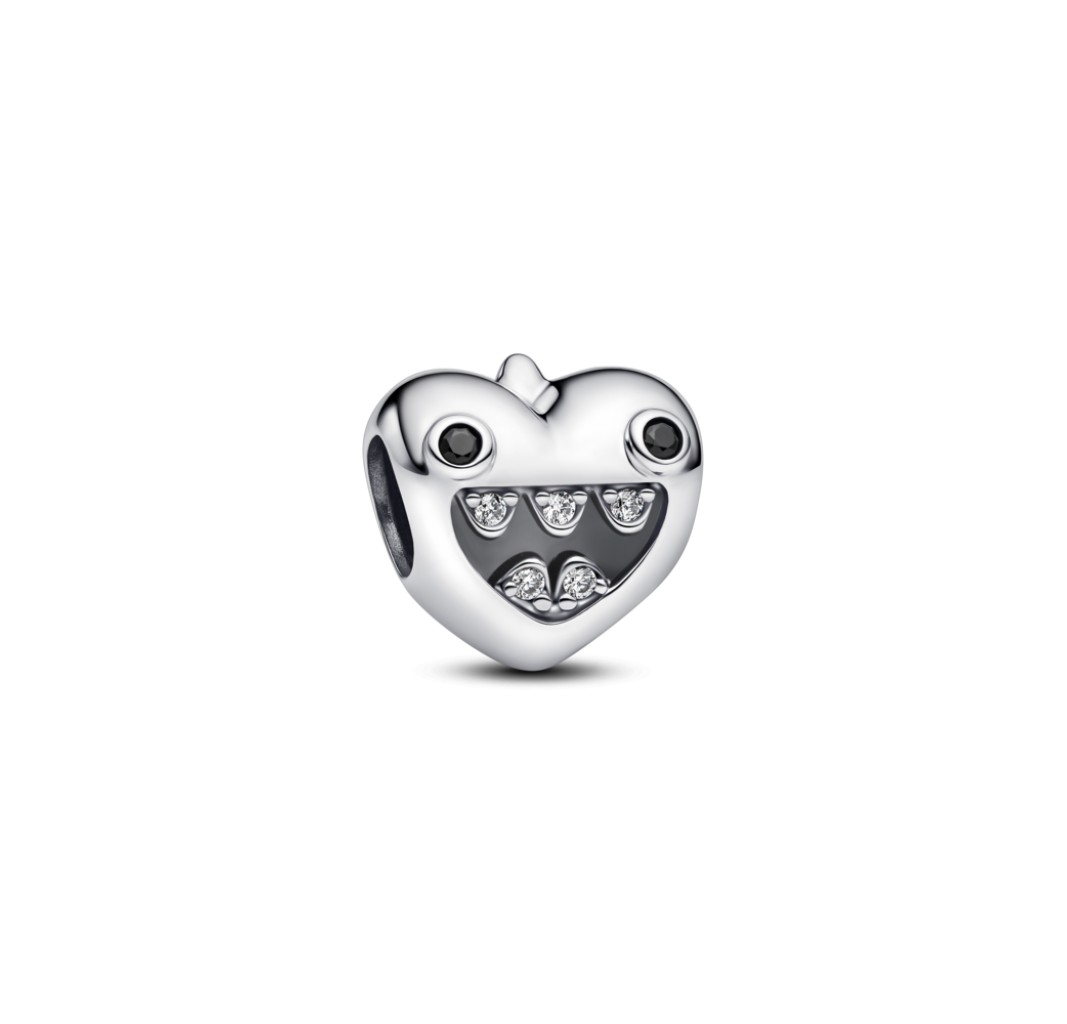 PANDORA 793768C01 Charm de plata de ley con forma de corazón de mamá de monstruos con cristal negro y circonita cúbica transparente