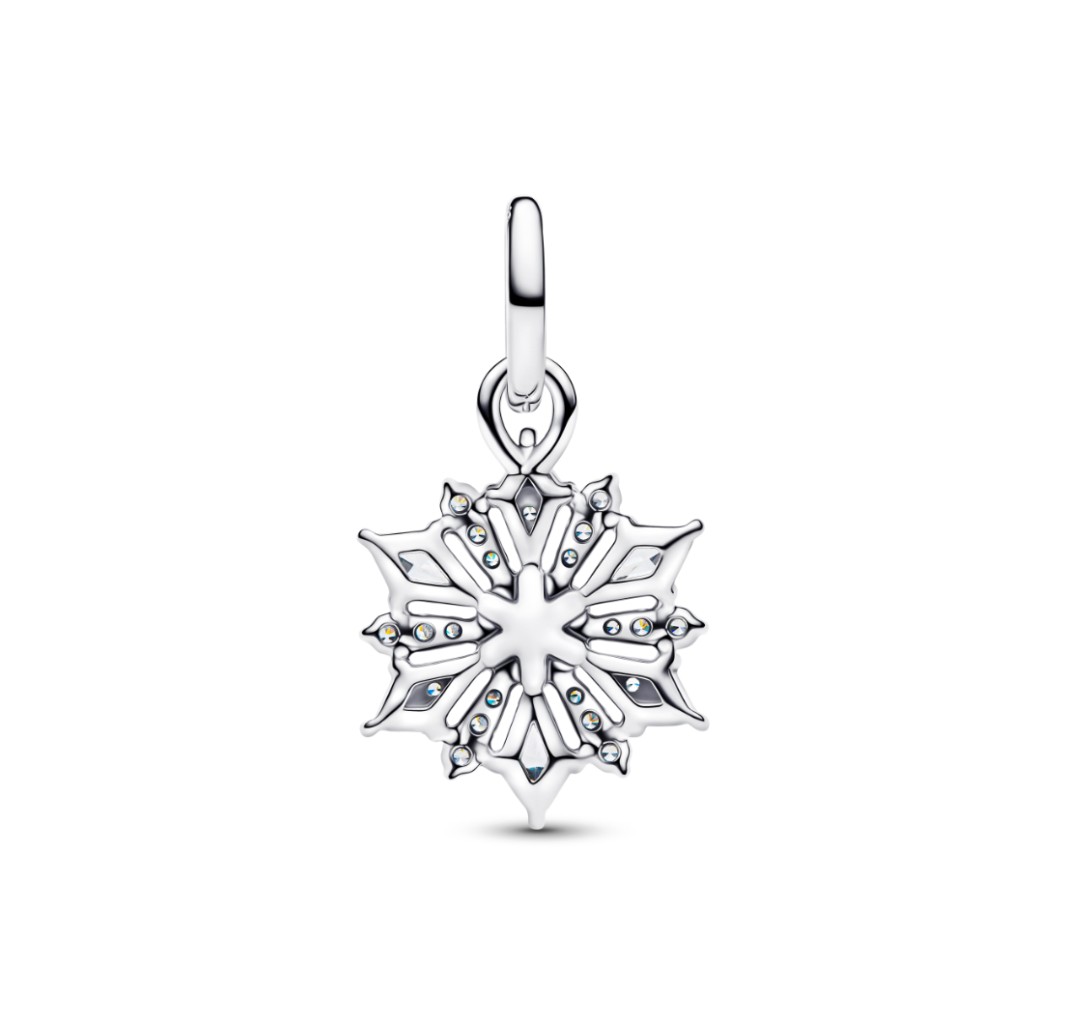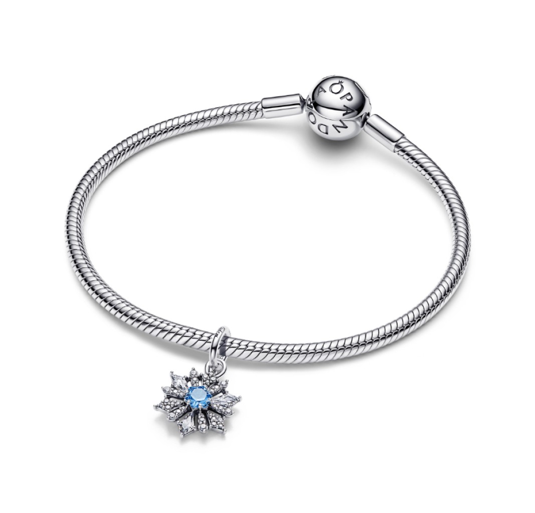 PANDORA 794209C01 Colgante de plata de ley con copo de nieve de Frozen de Disney con cristal azul agua y circonita cúbica transparente.