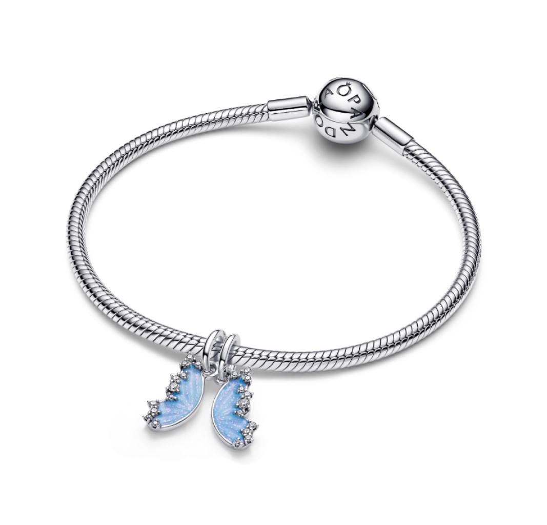 PANDORA 794244C01 Colgante divisible de mariposa en plata esterlina con circonita cúbica transparente y esmalte azul brillante.