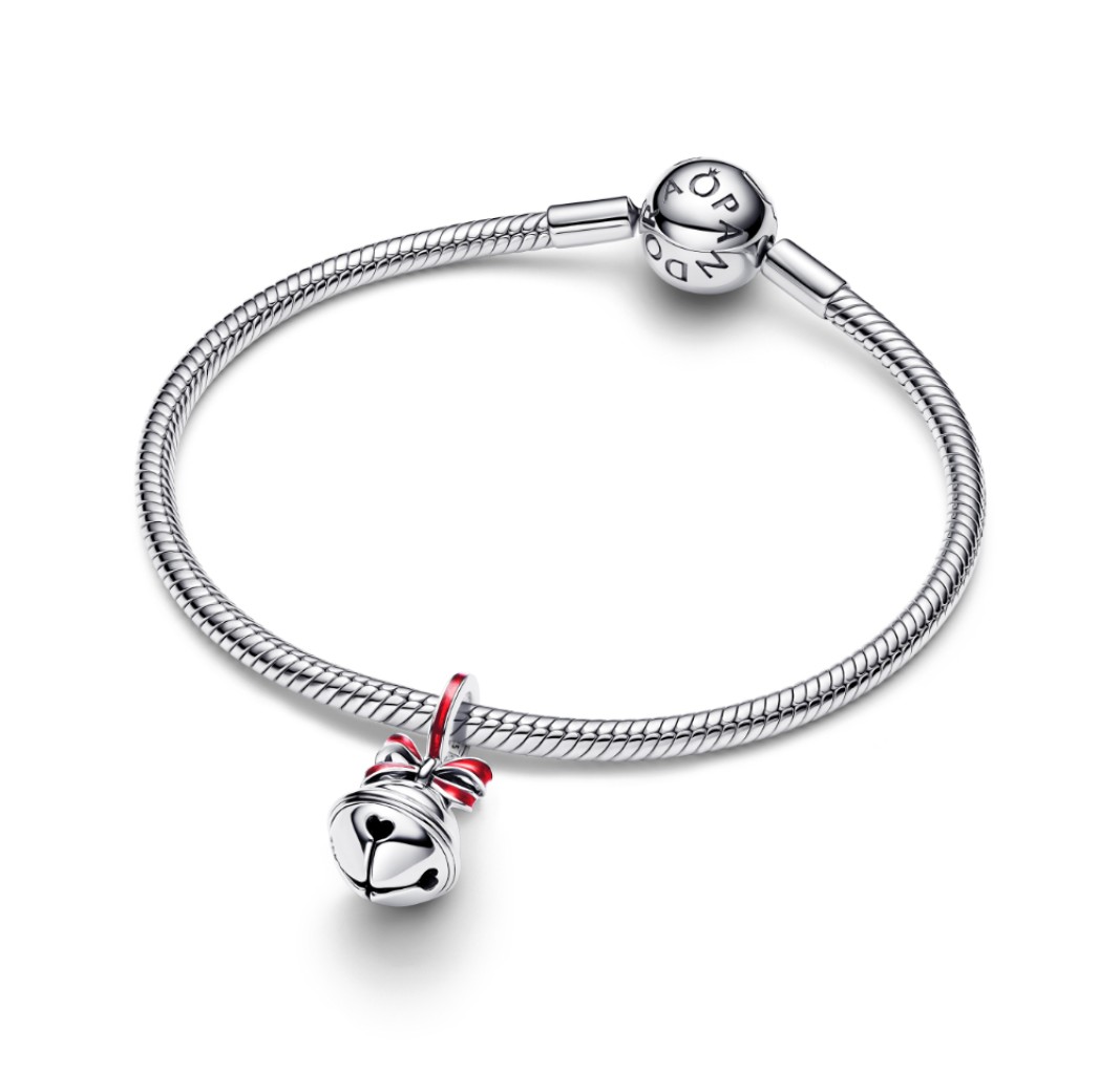 PANDORA 794246C01 Campana navideña colgante de plata de ley con esmalte rojo