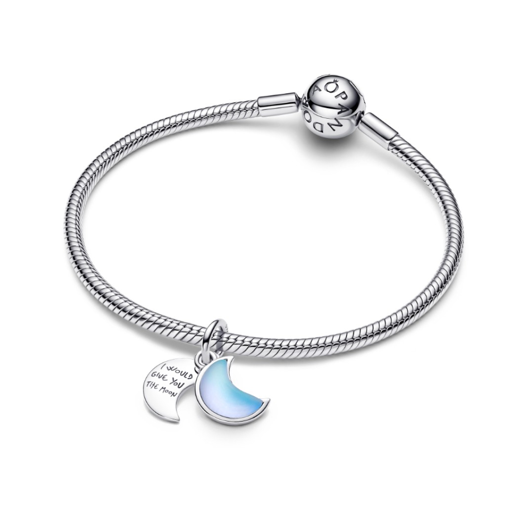 PANDORA 794272C01 Colgante doble de luna en plata de ley con cristal iridiscente de piedra lunar