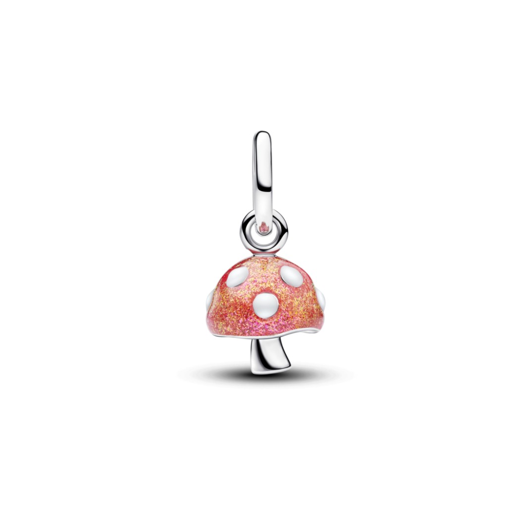 PANDORA 794376C01 Mushroom sterling silver dangle with glow in the dark white and shimmering red enamel