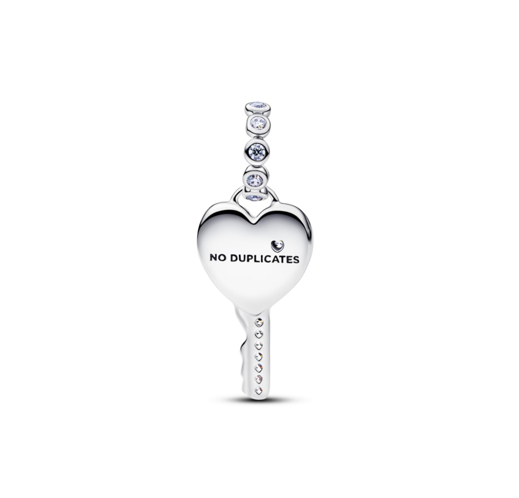 PANDORA 794427C01 Heart key sterling silver dangle with clear cubic zirconia and lab-created pink opal
