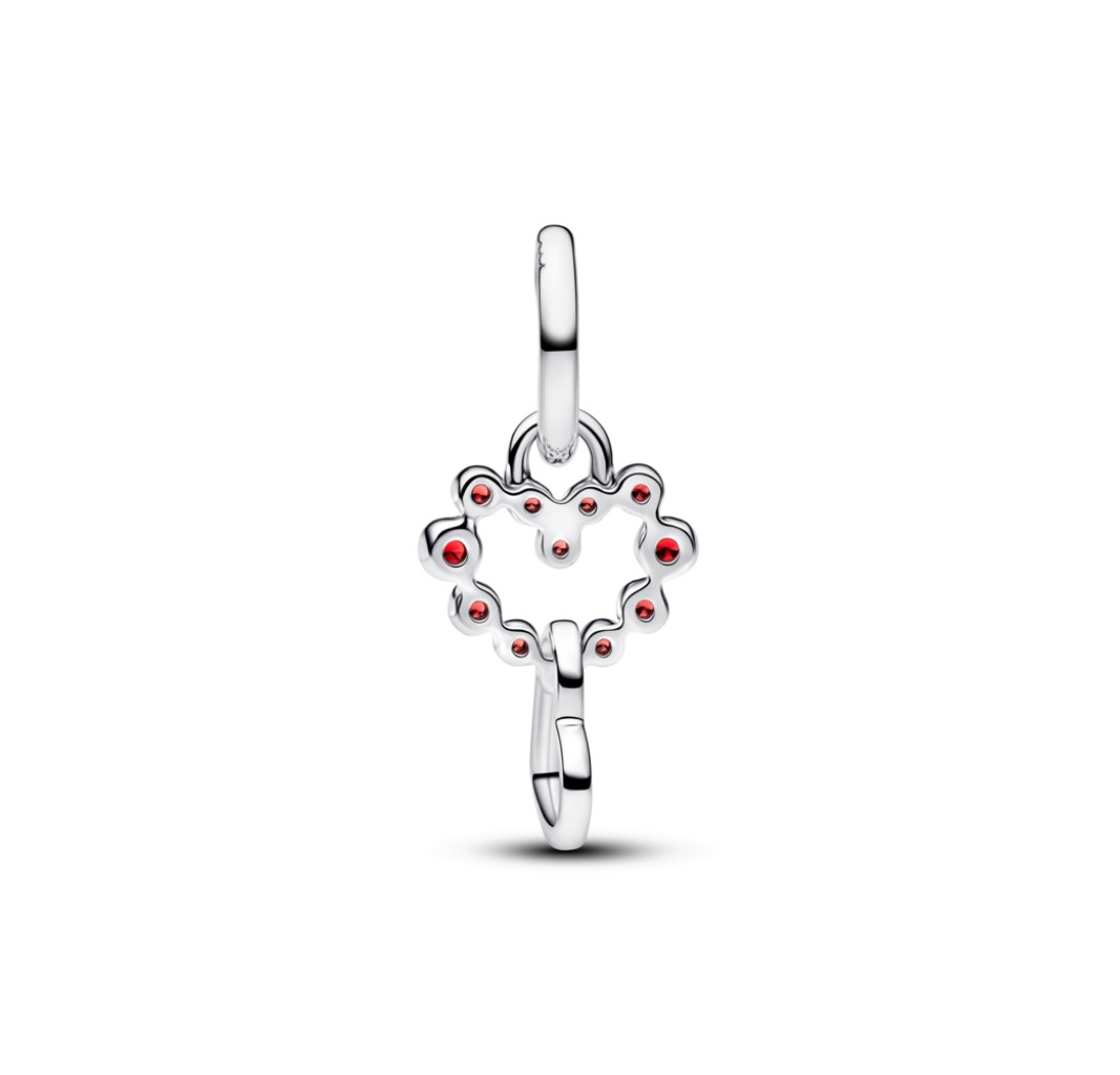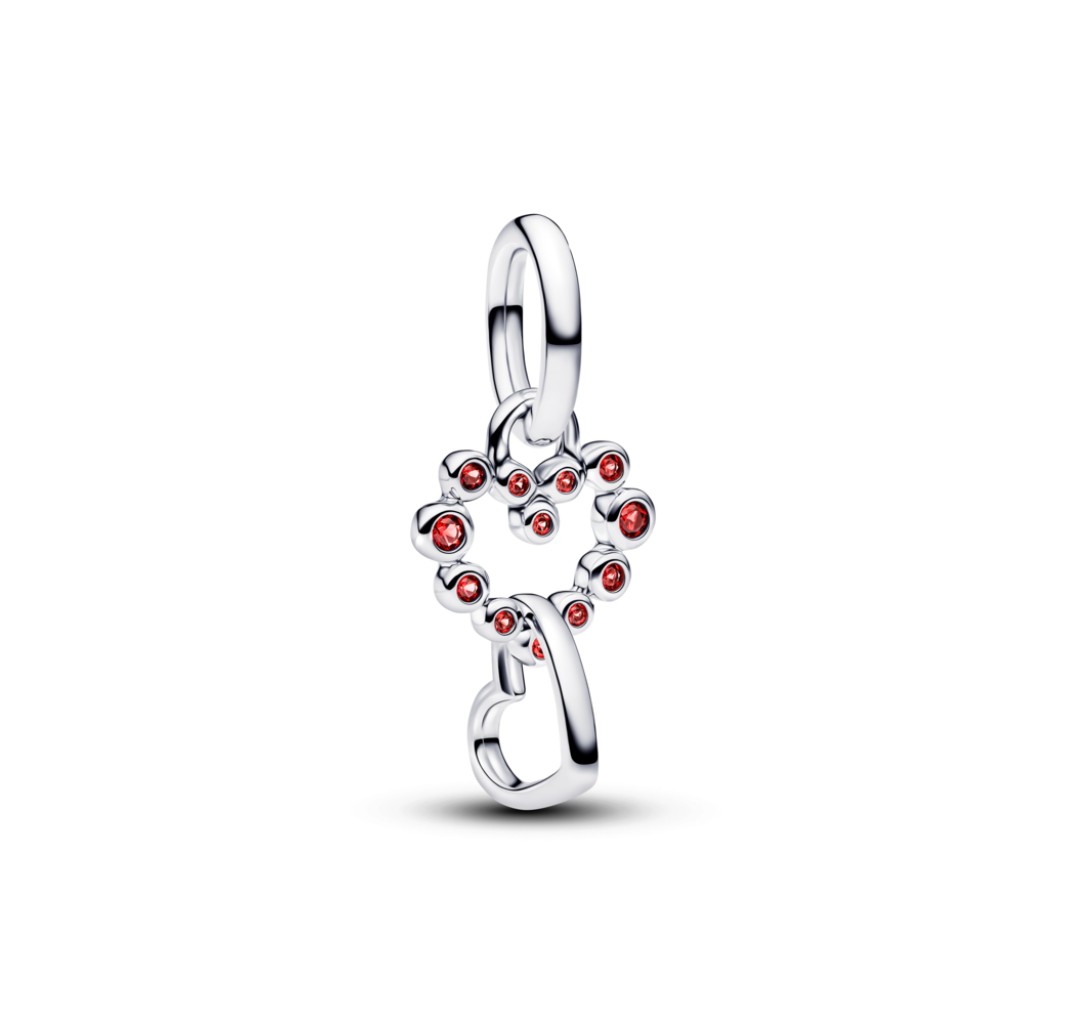PANDORA 794435C01 Connected hearts sterling silver dangle with salsa red crystal