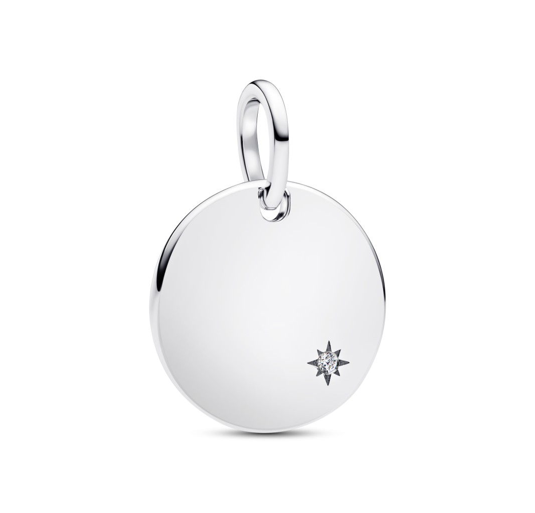 PANDORA Engravable round sterling silver pendant with 0.012 ct TW G-I VS+ round brilliant very good cut lab-grown diamonds