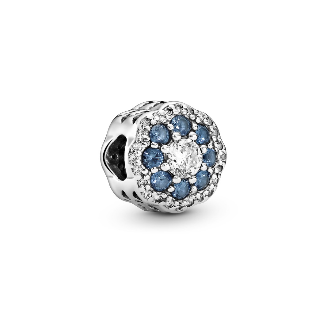 PANDORA Flower silver charm with moonlight blue crystal and clear cubic zirconia