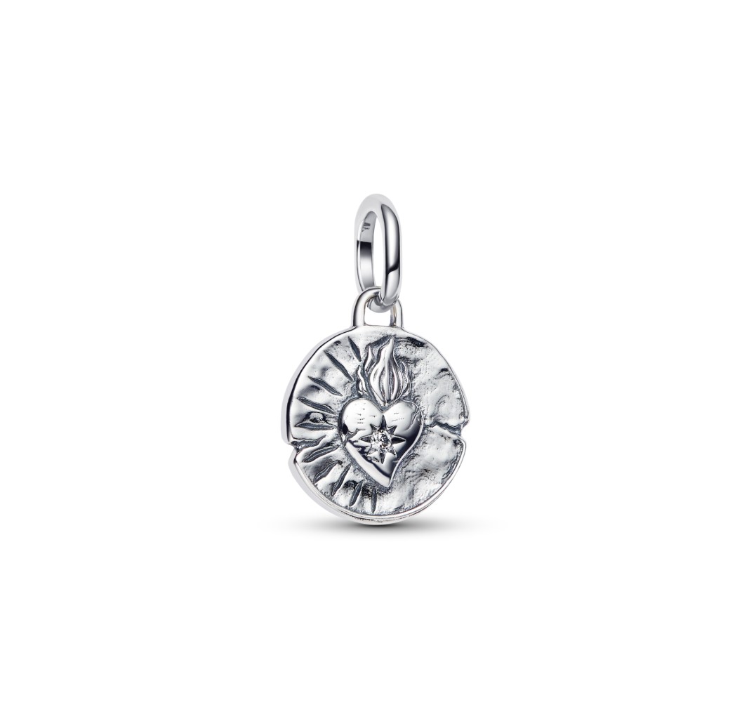 PANDORA Heart sterling silver medallion with clear cubic zirconia