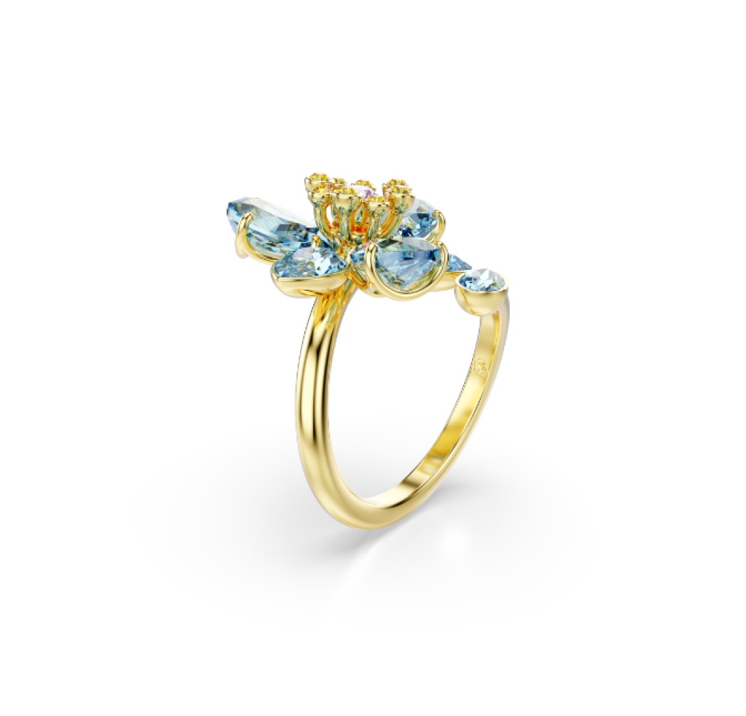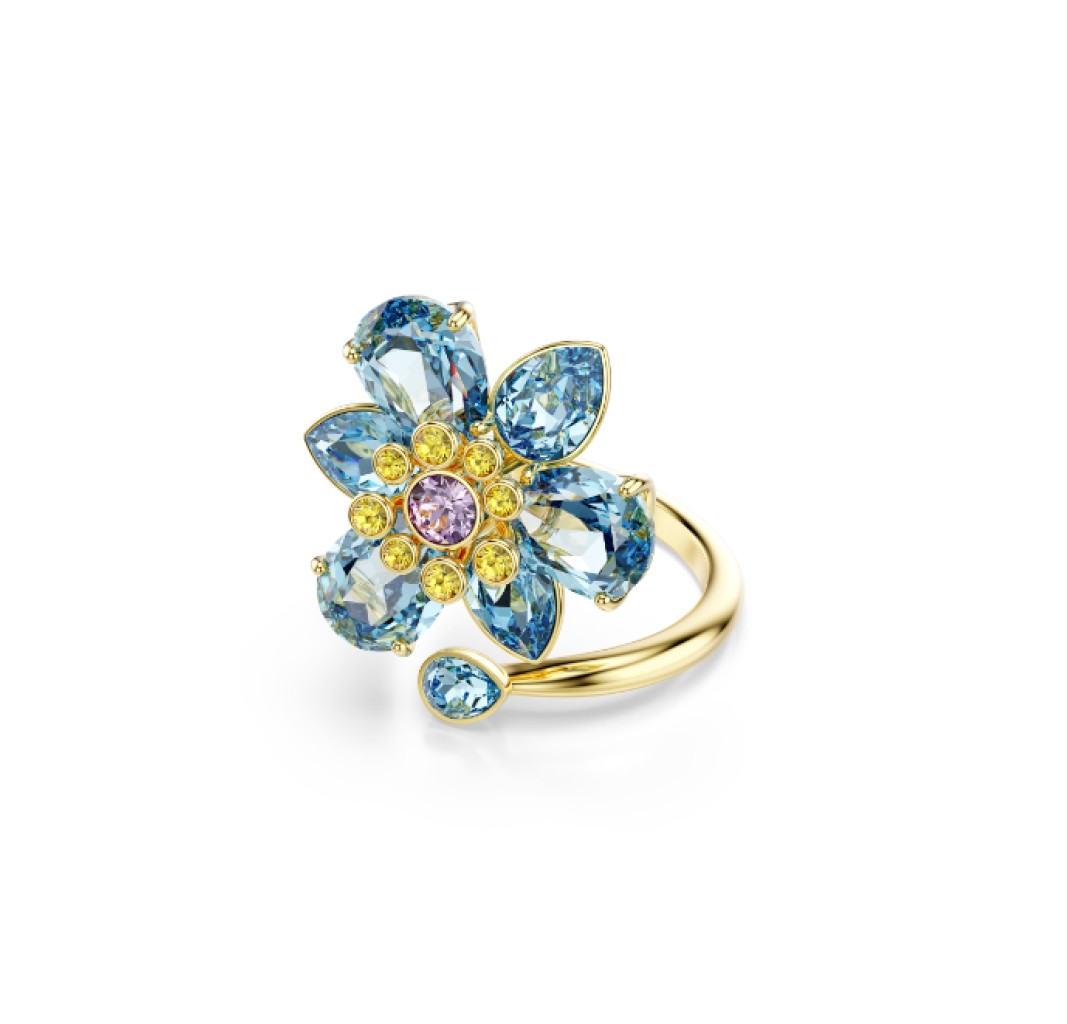 SWAROVSKI ANILLO ABIERTO IDYLLIA, TALLAS MIXTAS, FLOR AZUL, BAÑO DE TONO ORO
