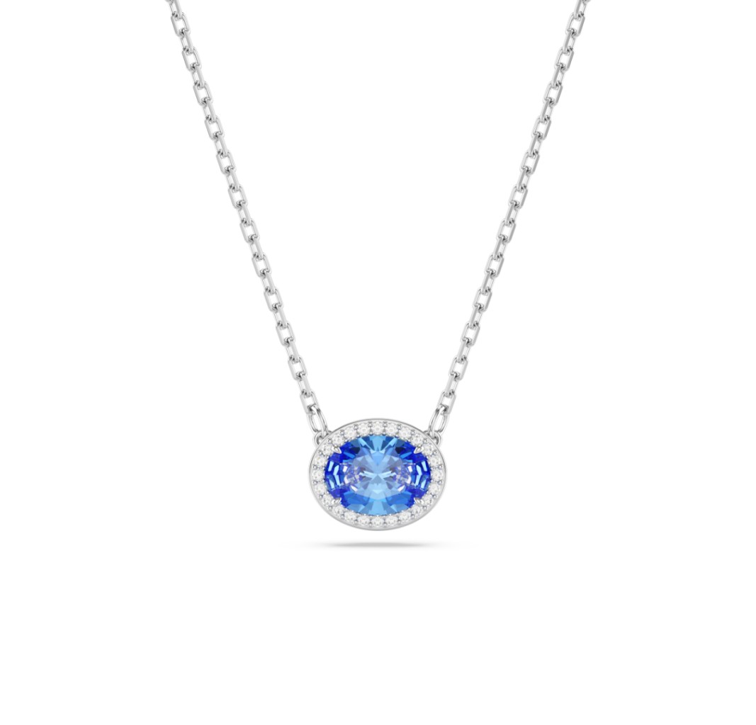 SWAROVSKI COLLAR CONSTELLA, TALLA OVALDADA AZUL. BAÑO DE RODIO