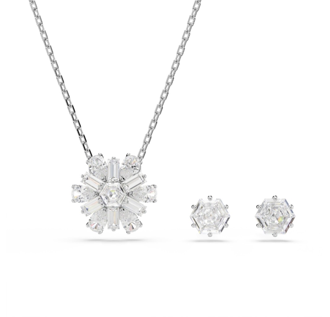 SWAROVSKI CONJUNTO IDYLLIA, TALLAS MIXTAS, COPO DE NIEVE, BLANCO, BAÑO DE RODIO