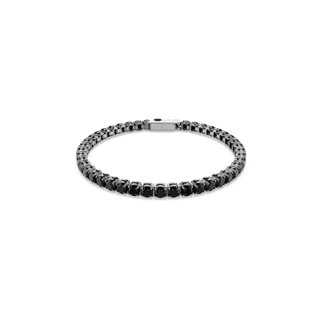 SWAROVSKI PULSERA TENNIS MATRIX, TALLA REDONDA NEGRA, BAÑO DE RUTENIO